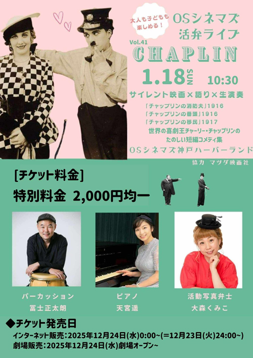 | 『チャップリンの番頭』22分 1916年 米 ミューチュアル作品 監督・主演/チャールズ・チャップリン 出演/エドナ・パーヴィアンス、ヘンリー・バーグマン |