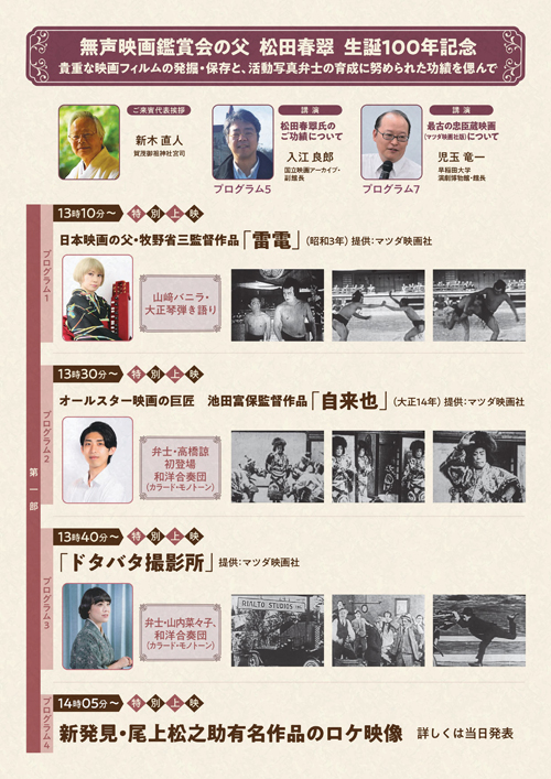 『雷電』15分 昭和3(1928)年 マキノ御室撮影所作品 監督/マキノ省三 出演/根岸東一郎、マキノ正博 弾き語り弁士/山崎バニラ |