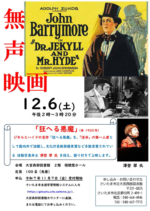 イベント名: 大宮西部図書館無声映画鑑賞会