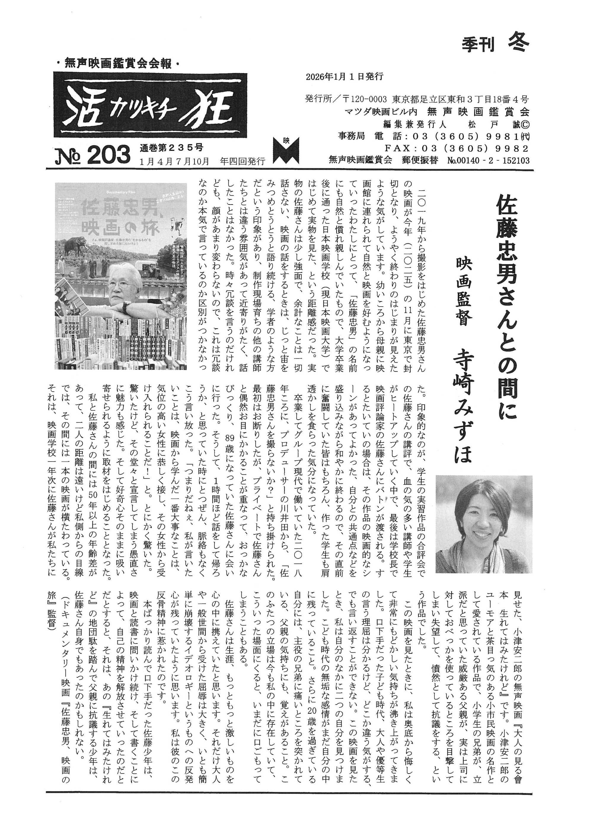 無声映画鑑賞会の会報「活狂」(カツキチ)203(2026年冬号)が完成致しました。
