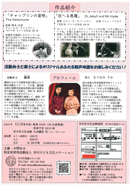 イベント名: 今みて新しい サイレント映画ライブ パート4