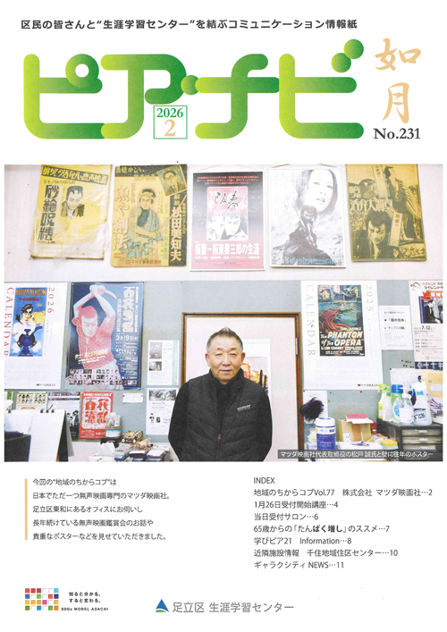 足立区生涯学習センター発行のコミュニケーション情報誌「ピア・ナビ」231(2月号)